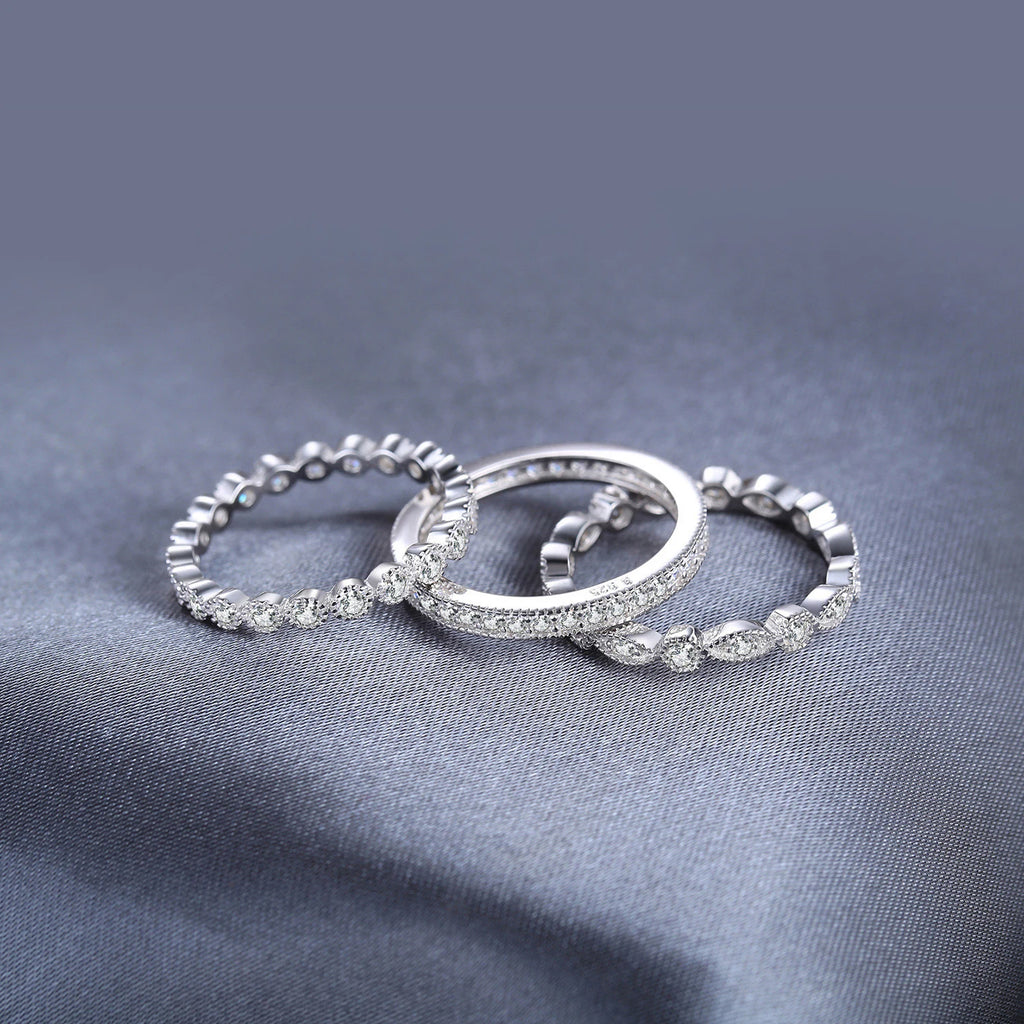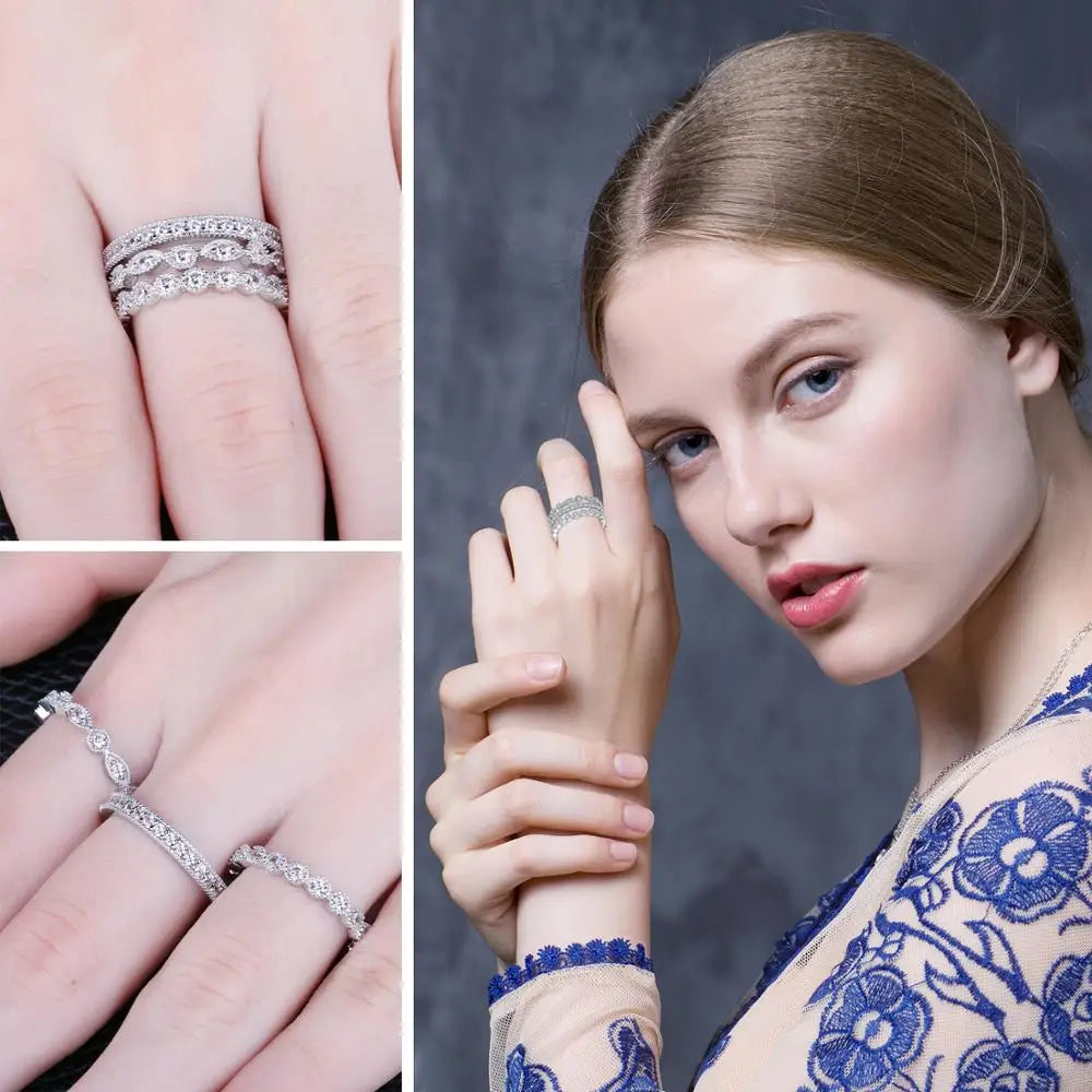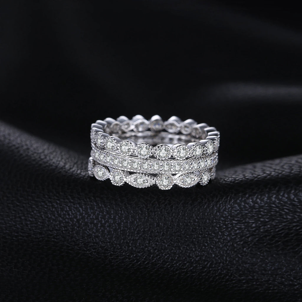 Este conjunto de três anéis em prata esterlina 925 é perfeito para criar diferentes combinações. Com zircônias AAA, traz um brilho marcante e sofisticado para qualquer ocasião.