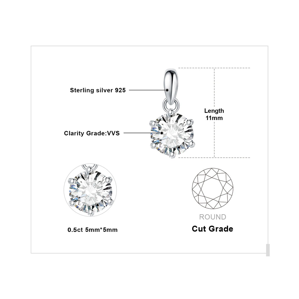 Com design solitário em corte redondo, este pingente em prata esterlina S925 destaca-se pelo brilho e sofisticação. A moissanite garante durabilidade, resistência e cintilância superior, tornando-o um clássico indispensável para quem busca elegância.